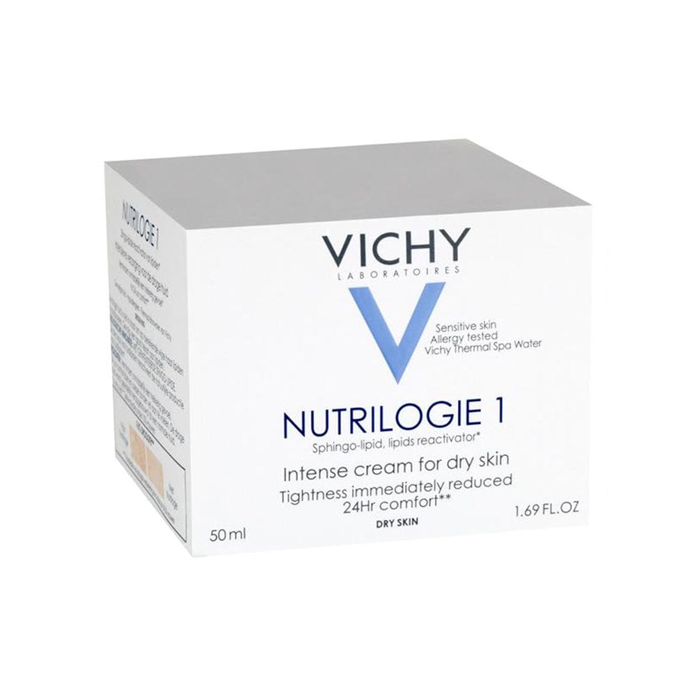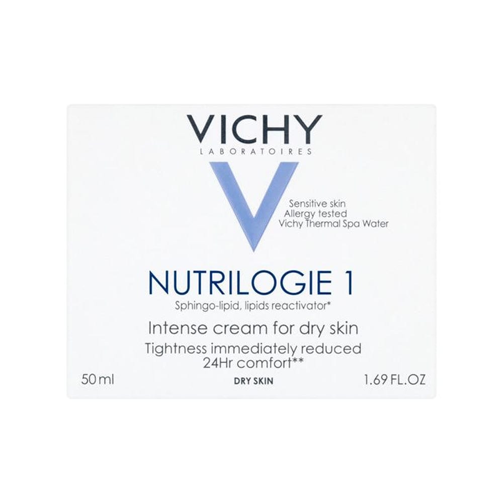 Vichy Nutrilogie 1 Intense Cream is designed for dry skin that feels tight and dehydrated. The skin is instantly soothed, hydrated and nourished for up to 24 hours. The non-greasy formula is enriched with Sphingo lipid to limit skin water loss, while fatty acids and plant oils leave the skin feeling smoother.