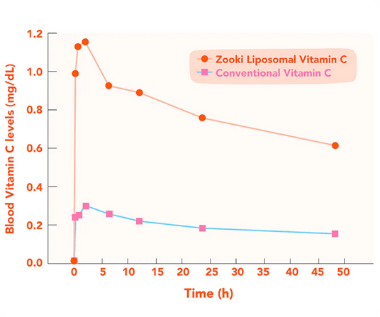 In multiple clinical trials, we've shown that wrapping nutrients in Zooki Liposomes provides 4x higher absorption into the bloodstream compared to conventional supplements