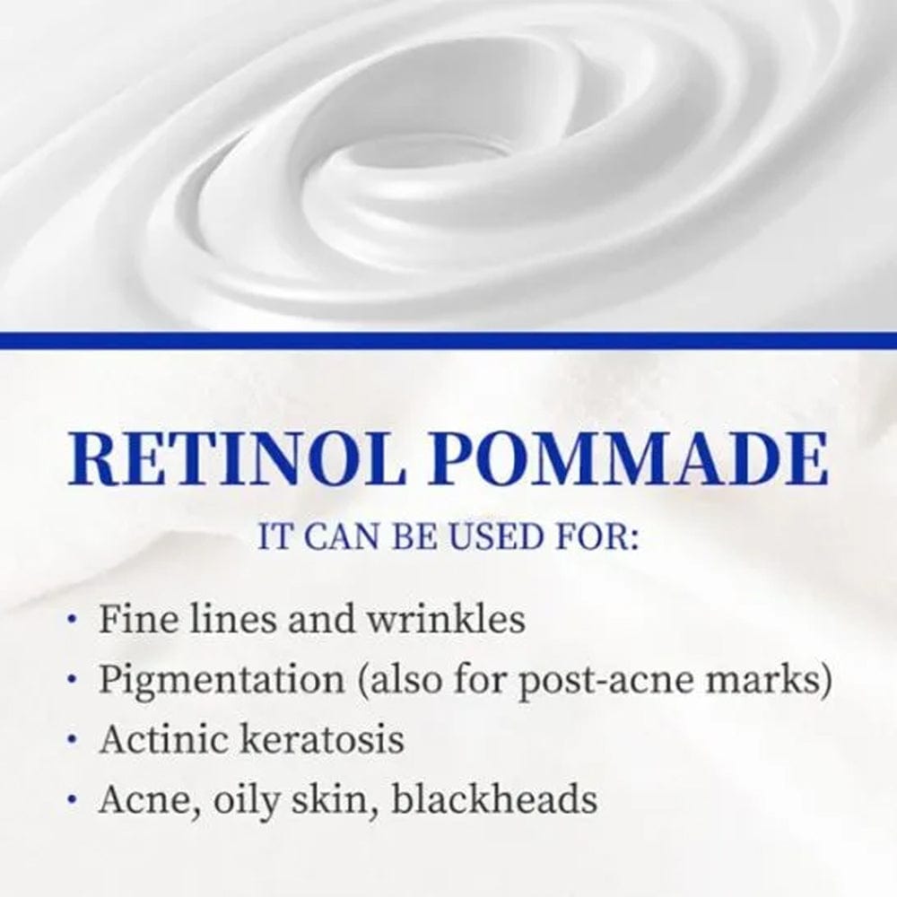 This oily (pommade means ointment) contains 0.12% of the mildest forms of vitamin A, called retinol esters. 0.12% of retinol esters is not the same as a 0.1% of pure retinoic acid.