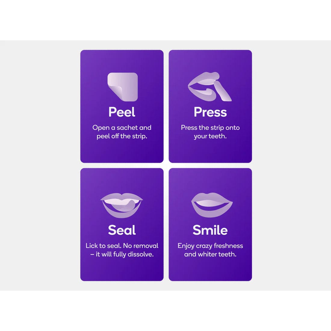 - Press the strip onto moistened teeth.