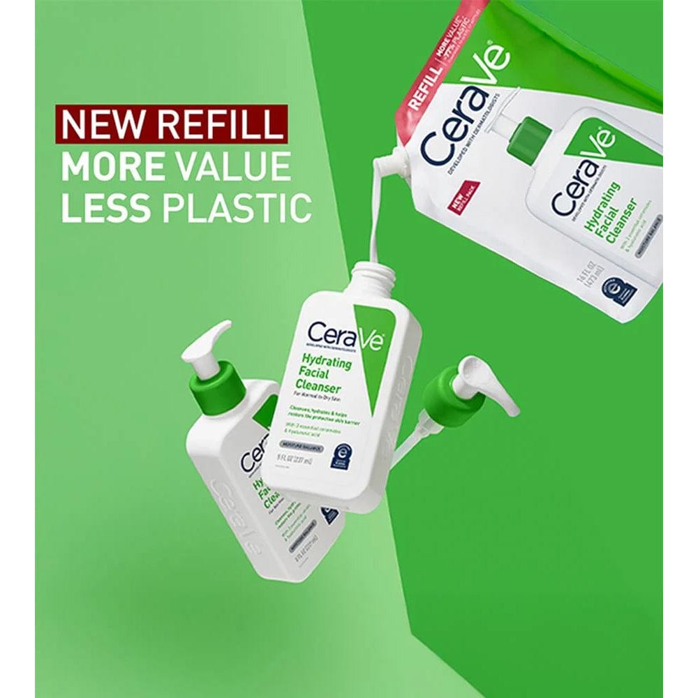 CeraVe hydrating cleanser Refill is a gentle, non-foaming formula containing ceramides and hyaluronic acid to support the skin's natural barrier and retain moisture. Developed with dermatologists, this cleanser cleans and refreshes skin without stripping it of moisture or causing tightness and dryness. Suitable for normal to dry skin types.