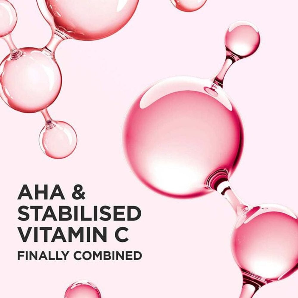 Formulated with AHA to gently exfoliate and refine skin texture, this glow-boosting serum delivers instant radiance. Enriched with Stabilised Vitamin C, it targets the first signs of ageing and works to even out skin tone, providing long-term luminosity and vibrancy.