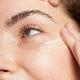 - Gently pat onto undereyes and eyelids, massaging in upward motion from the orbital bone toward your temples.