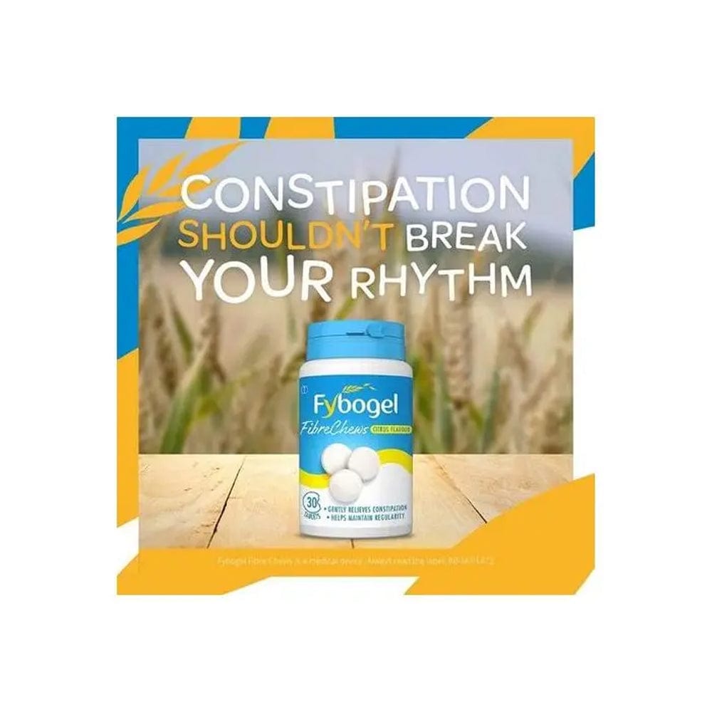 Fybogel Fibre Chews are tasty citrus flavoured chewable tablets that helps to relieve constipation and maintain regularity.