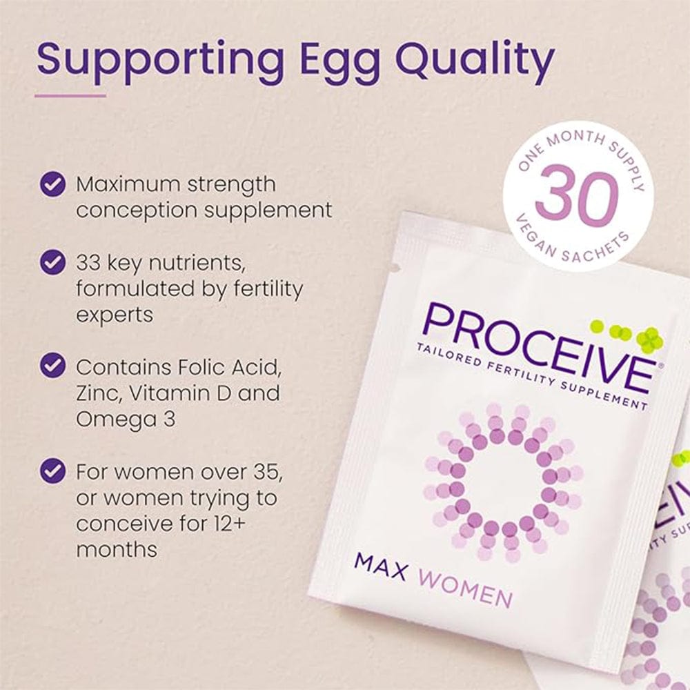 Proceive MAX Women is tailored to support the nutritional needs of women over 35 when trying for a baby as well as those aged between 18 and 35 who have been trying to conceive a year or more.