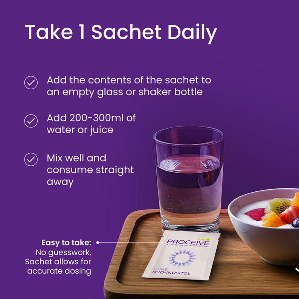 Myo-inositol is a naturally occurring compound involved in many cellular functions. Each sachet of Proceive® Pure Myo-Inositol delivers a concentrated daily dose of 4,000mg in a flexible, powder format.