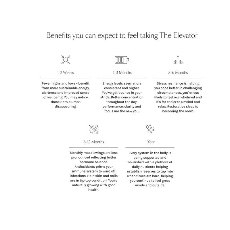 Developed by a team of scientists, nutritionists and female health experts, Sisterly's hero supplement, The Elevator, is a smart all-in-one solution. Easy to take and absorb, the science-backed daily sachets contain optimal dosages of nutrients proven to support metabolism, immunity, hormones, skin & bones, as well as balanced blood sugar levels. Going one step further than your average multivitamin, the hard-working formula contains nutrients women are often deficient in - think magnesium, essential for muscle recovery and quality of sleep; iodine for healthy thyroid, CoQ10 for energy and B vitamins for hormonal balance and mood.