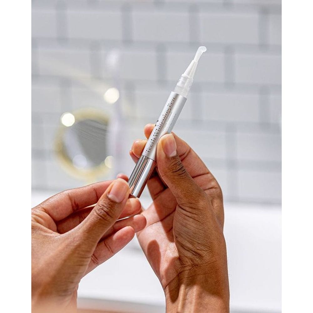 It dispenses a small amount of gel, which contains the active whitening ingredient hydrogen peroxide, onto the teeth. Unlike other pens which use a white paint-like substance to cover stains, this formula actively dissolves stains leaving long-lasting results.