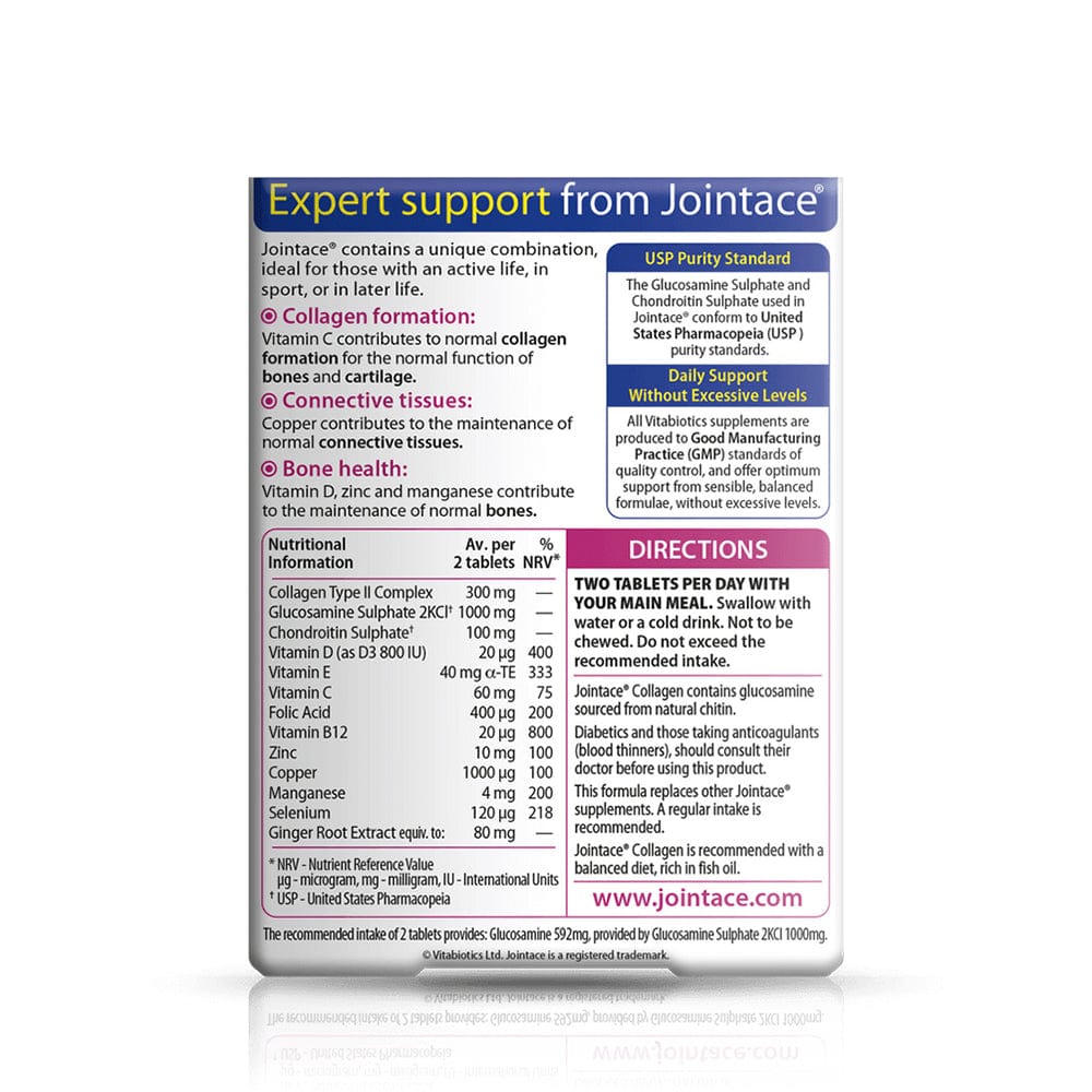 Cartilage and bone health are important for long term wellbeing. Jointace Collagen has been developed by Vitabiotics nutritional experts and provides unique combinations of trace minerals, vitamins and nutrients, ideal for those with an active life, in sport or in later life.